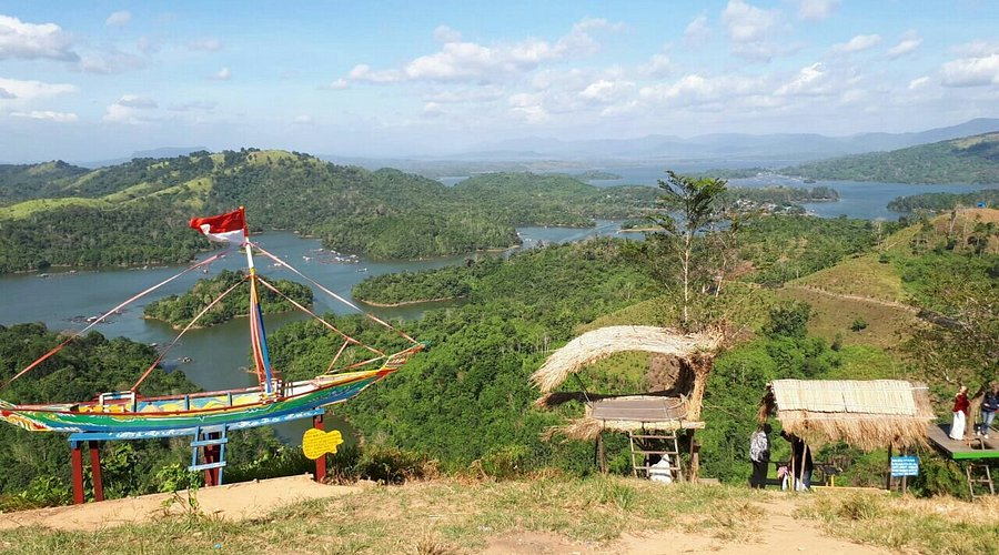 Ini adalah alasan utama orang datang. Dari puncak, pengunjung dapat melihat gugusan pulau kecil di tengah waduk. Bentuk lanskap seperti ini sangat sulit diabaikan.