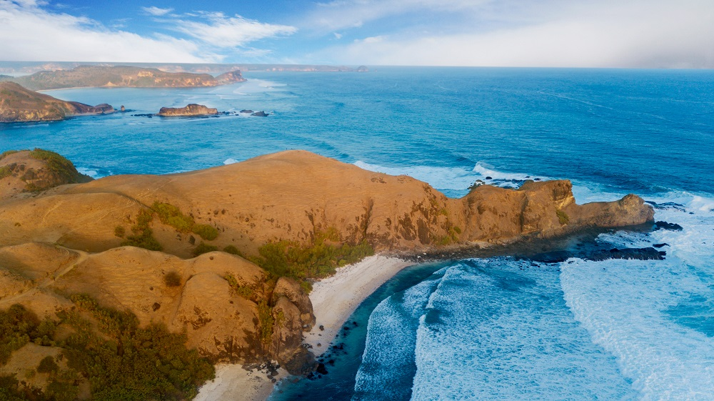 Daya tarik terbesar Bukit Merese tentu saja ada pada pemandangan lautnya. Dari atas bukit, pengunjung bisa melihat birunya air di sekitar Tanjung Aan, garis pantai yang melengkung, dan susunan bukit di kejauhan yang membuat cakrawala terasa penuh. Panorama seperti ini membuat pengalaman di Bukit Merese terasa langsung memuaskan begitu sampai di atas.