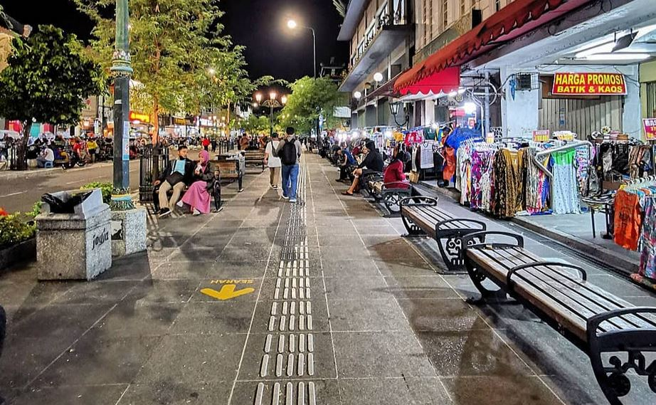 Salah satu hal yang paling kuat dari Malioboro adalah pengalaman berjalan kaki. Kawasan ini dikenal sebagai area yang sangat menyenangkan untuk dijelajahi pejalan kaki. Banyak wisatawan sengaja datang tanpa agenda rumit, lalu menghabiskan waktu hanya untuk berjalan, melihat toko, memperhatikan wajah bangunan, dan menikmati suasana jalan.
