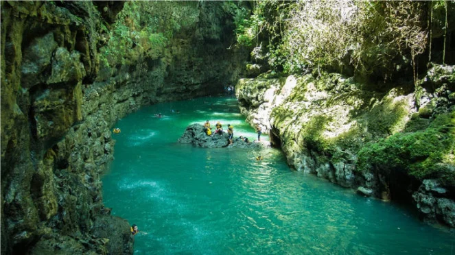 Kawasan ini cepat viral karena visualnya sangat kuat. Dinding batu, aliran air, warna tebing, dan suasana liar yang tetap mudah dijangkau membuatnya terlihat menonjol di foto maupun video pendek. Karakter visual seperti inilah yang biasanya membuat tempat cepat menyebar di media sosial.