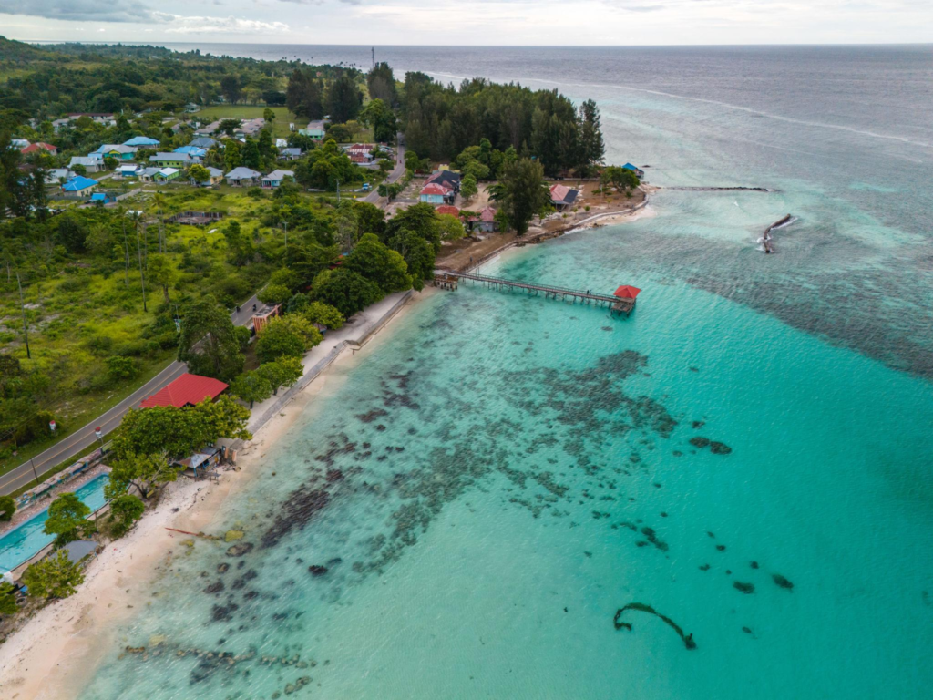 Pantai Jikumerasa menjadi contoh paling mudah untuk melihat sisi bahari Pulau Buru. Dinas Pariwisata Maluku menyebut pantai ini berada di Desa Jikumerasa, tidak jauh dari Namlea, dan dikenal karena pasir putih serta gradasi air laut yang jernih. Dari foto udara yang beredar luas, kawasan ini juga terlihat punya garis pantai yang rapi, jembatan kayu, dan kampung pesisir yang menambah kesan hangat. Tempat ini cocok untuk pelancong yang ingin menikmati laut tanpa harus menempuh perjalanan yang terlalu panjang dari pusat aktivitas di Namlea.